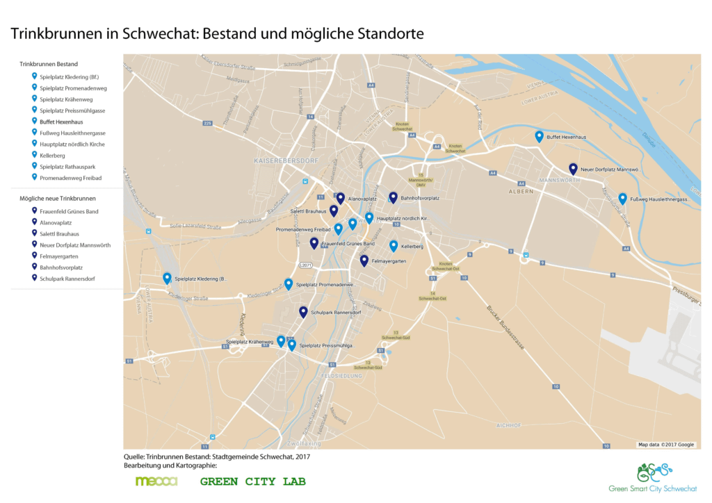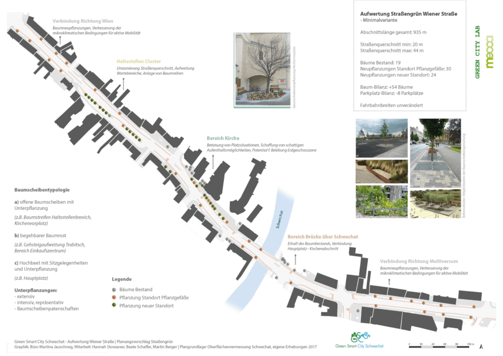 During this introductory project, Schwechat focused on Smart City issues in its open spaces and green areas and on the development of specific implementation projects. “Green City Schwechat” was an integrative, cross-system approach aimed at preparing specific projects to be implemented and embedded in other plans and concepts. Green infrastructure such as trees and bushes are to be used in a targeted manner to adapt the town to climate change. In addition to ideas “from outside”, concepts were developed in cooperation with residents.