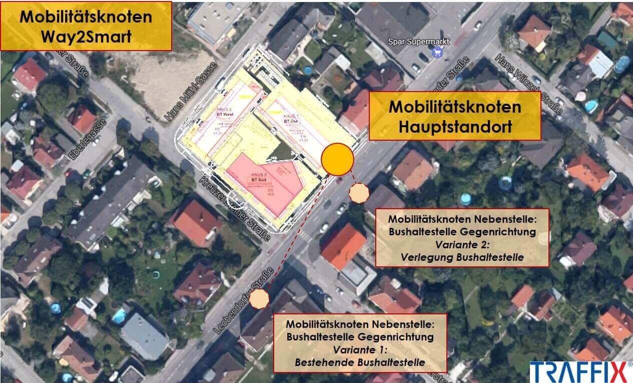 Die Stadt Korneuburg setzte sich zum Ziel, zwei Wohnbauten im Gemeindeeigentum zu sanieren, das Grundstück durch Zubauten zu verdichten und die Gebäude mit energiegewinnenden Flächen auszustatten. Durch einen Mobilitätsknoten im Bereich der sanierten Objekte werden Alternativen zur Benützung privater Autos geschaffen. In dieser Musterwohnsiedlung sollen gezielt leistbare kleine Wohnungen für junge Mieter bereitgestellt werden. Flankierend dazu werden durch Kommunikationsprogramme Maßnahmen und Bedürfnisse von Alt- und NeumieterInnen auf Augenhöhe mit ExpertInnen abgestimmt. MieterInnen und weitere BürgerInnen werden für das Ziel Energieautonomie Korneuburg informiert und aktiviert und Bauträger unter sozialwissenschaftlicher Begleitung in den Prozess eingebunden. Schließlich sollen diese exemplarischen Maßnahmen in Hinblick auf die hochgesteckten Energie- und CO2-Einsparungsziele der Stadt in einer „Energieautonomieplattform“ so aufbereitet und dokumentiert werden, dass die Einzelmaßnahmen als Vorbilder und Anregungen für vergleichbare Projekte Korneuburg und anderen Städten zur Verfügung stehen. Aufgrund der Kostenentwicklung für das Bauprojekt (Angebot des bestbietenden Generalunternehmers im Vergleich zu den Kostenabschätzungen im Vorfeld) hat der Gemeinderat der Stadtgemeinde Korneuburg am 6. November 2019 mehrheitlich beschlossen, das Bauprojekt zu ändern und neu auszuschreiben. Die energetischen Maßnahmen und der Mobilitätsknoten, die im Testbed way2smart vorgesehen waren, sollen im neuen Bauprojekt umgesetzt werden. Die Projektänderung betrifft insbesondere den Bereich der Sanierung, der auf ein Minimum reduziert werden soll, um das Risiko zusätzlich notwendiger Arbeiten und dadurch entstehender Kosten hintanzuhalten. Die Stadtgemeinde erwartet sich von der Neuausschreibung eine Kostenreduktion von rd 20 % gegenüber dem Angebot des Bestbieters im bisherigen Projekt.